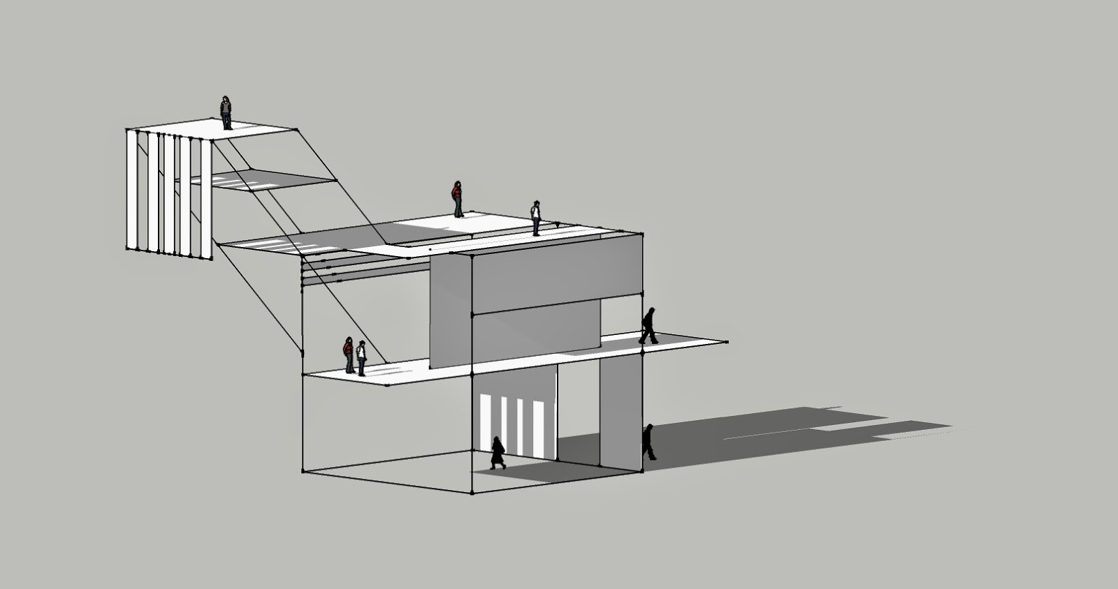 A partir del ultimo proyecto trabajado hice un modelo en SketchUp para la entrega evaluada de computación, a continuación unas vistas del proyecto levemente modificado, con algunos planos más, para hacer la labor un poco más interesante.